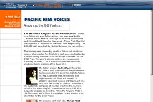 pacificrimvoices / (Web site) / Kirriyama Pacific Rim Book Award / WaterBridge Review (Pacific Rim Voices) / -REVIEW : of Under the Red Flag / Spring Rain / -REVIEW : of Nathaniel's Nutmeg
