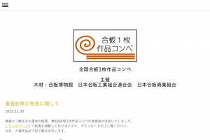 Dec, 2022 第6回全国合板1枚・作品コンペの受賞作が決定・発表されました / こちら / 第3回全国合板1枚作品コンペ / 開催概要、応募方法などの詳細はこちら / ホームページ / 詳細・問合せはこちらから>...