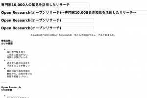 Open Research / x-book / visit open-research.jp for latest info / オープンリサーチ / 今すぐ登録する / スポットコンサルティングサービス「Open Research」提供開始(「X-book」を統合) MORE / スポットコ...