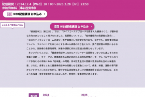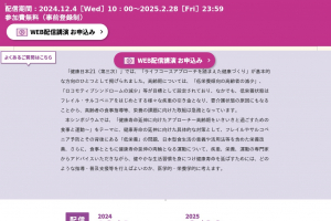 「食育健康サミット2024」ページ / 食育健康サミット2024 健康寿命延伸に向けたアプローチ オンデマンド配信 / 令和6年度「食育健康サミット(食育健康サミット2024)」の参加(視聴)申込みを開始いたしました /...